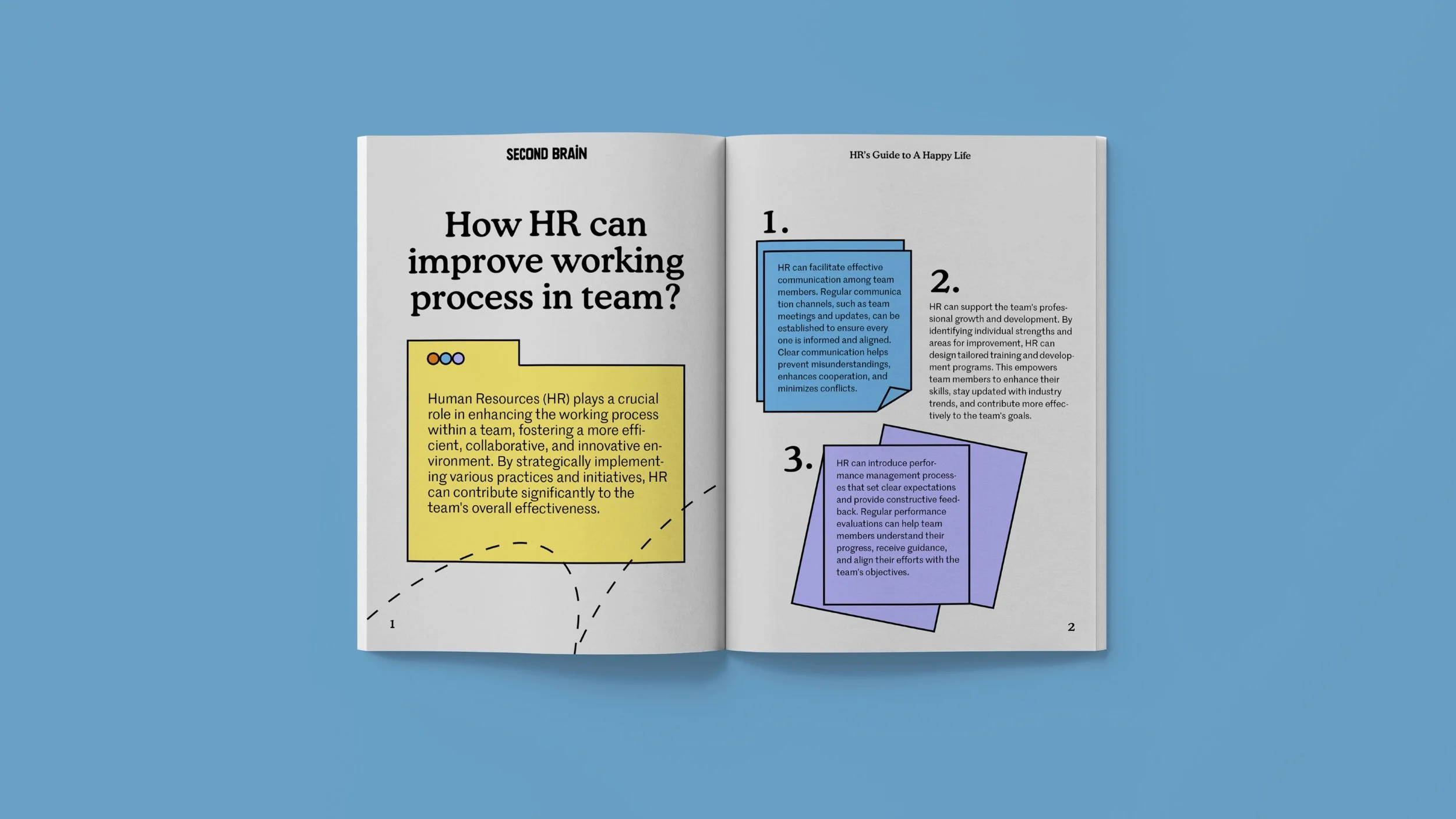 From the ground up, we designed a brand system that breathes life into HR, reflecting Second Brain’s focus on empathy and collaboration. We chose vibrant colors and organic shapes to create a visual language that’s as dynamic as the people it serves. This bold, playful approach was crucial in conveying Second Brain’s modern take on HR, especially considering their educational components like workshops and resources for budding professionals.