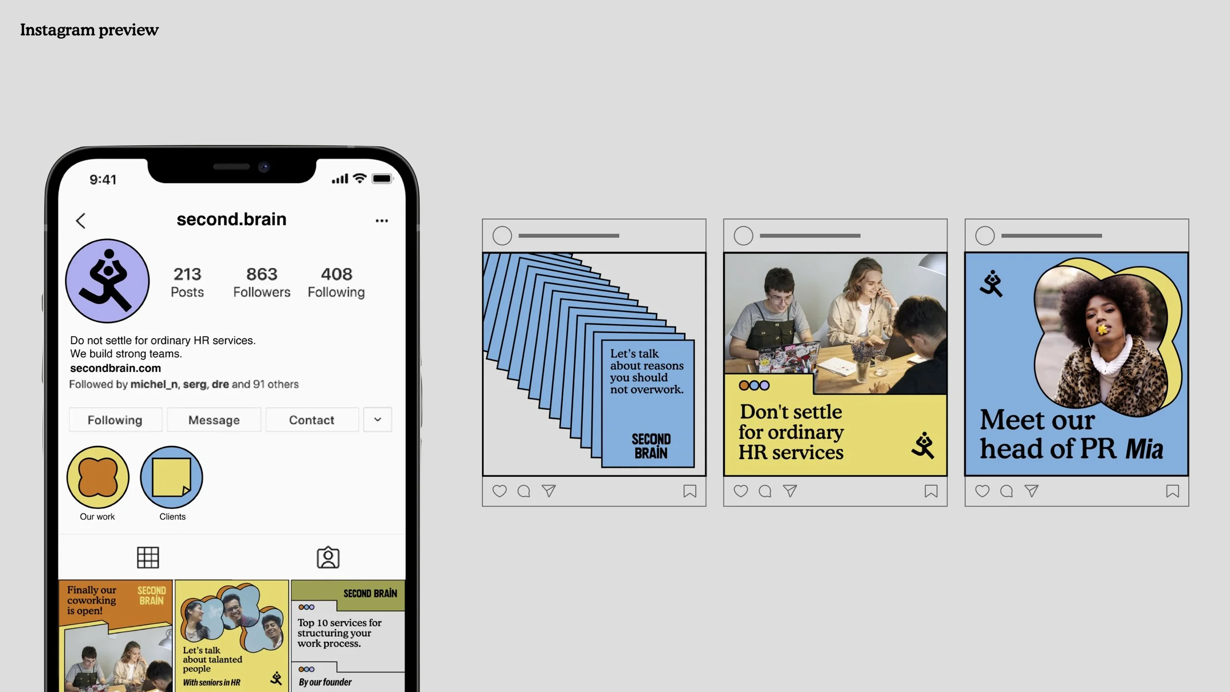 We started by flipping the traditional HR narrative on its head. Instead of the usual corporate jargon, we envisioned HR as something people would actually want to engage with—a space that empowers and connects. Our goal was to position Second Brain as the fresh alternative to the outdated processes that bog down the industry. The big idea? To build a brand around the concept of "HR that feels like community," where collaboration and empowerment are at the core. This idea became the foundation for every design decision and brand touchpoint.